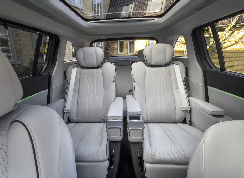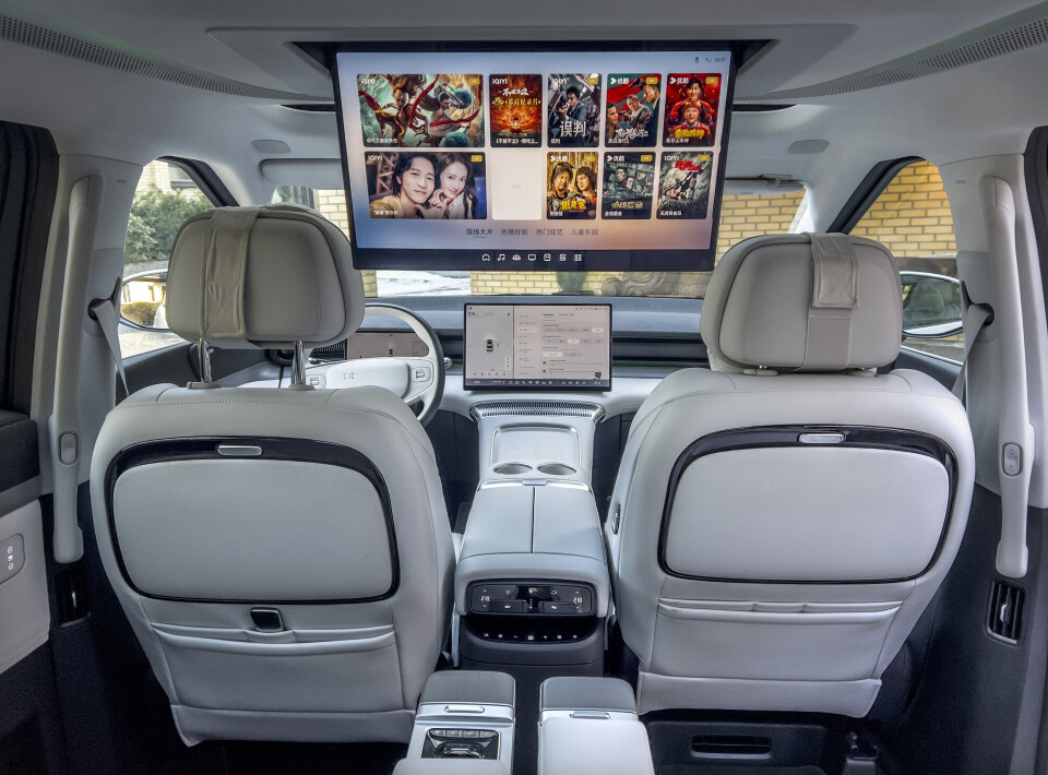 I Xpeng X9 kan du legge deg bakover som i en massasjeseng og sveve nærmest vektløs mens du ser en film, ifølge produsenten. Du må bare ordne sjåfør først.