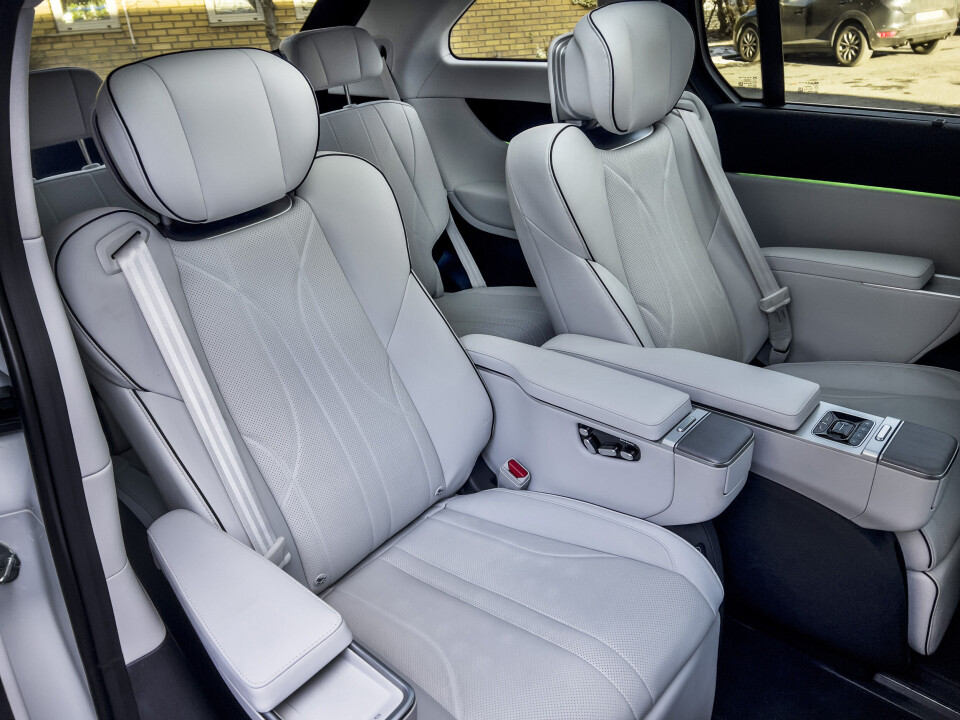 Så godt som alt i bilen styres via elmotorer. Men der hodestøttene i forsetene må stilles til passende høyde manuelt, justeres hodestøttene i andre og tredje seterad elektrisk.