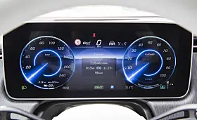 Fordi du vet at EQE 350 sprinter til 100 på 6,6 sekunder, er det derfor deilig å kunne lene seg tilbake i de gråhvite og ventilerte veganskinnsetene med massasje, kjøre mykt og vinke fram de utålmodige i visshet om at 292 hk og 765 Nm i drakraft holder i massevis til forsvarlige forbikjøringer. Mercedes-Benz oppgir ikke hvor mye hver av de to el-motorene yter, men elektronikken fordeler kreftene dit valgt kjøreprogram finner det mest hensiktsmessig å sende kreftene.