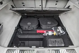 Tredelt bakseterygg (40/20/40) gjør det enkelt å laste inn noen pakker med ski, og takk og pris for det store rommet under bagasjeromsgulvet til ladekabler, spylervæske etc. Men selv om 520 liter tilgjengelig volum til det man laster inn bak høres mye ut, synes det snaut til en så stor bil å være. Her holder det ikke med plass til fire kofferter for en familie på ferietur i tre uker. Bagasjerom foran er bare å glemme. Der er ikke Mercedes-Benz ennå. Til gjengjeld trekker bilen inntil 1.800 kg på det elektrisk utfellbare tilhengerfestet, som – tro det eller ei – er standard.