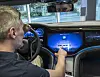 Den buede skjermenheten ser ut som om den svever fra A-stolpe til A-stolpe. Dessverre er den kun standard på toppmodellen. Under en felles glassflate sitter tre skjermer som visuelt smelter sammen til inntrykket av én skjerm.