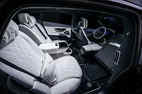 EQS kan utstyres med den valgfrie Rear Comfort Package Plus med Executive seter, som nå har en spesiell fotstøtte på høyre side. Denne er strategisk plassert mellom forsetets skinner, og gir baksetepassasjerene muligheten til å hvile føttene i en skråstilt stilling.