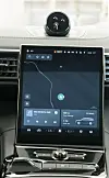Ideen til den store vertikalt monterte dashbordskjermen ser også ut til å være rappet fra Tesla, men førerplassen framstår ikke like minimalistisk som i Teslas biler.