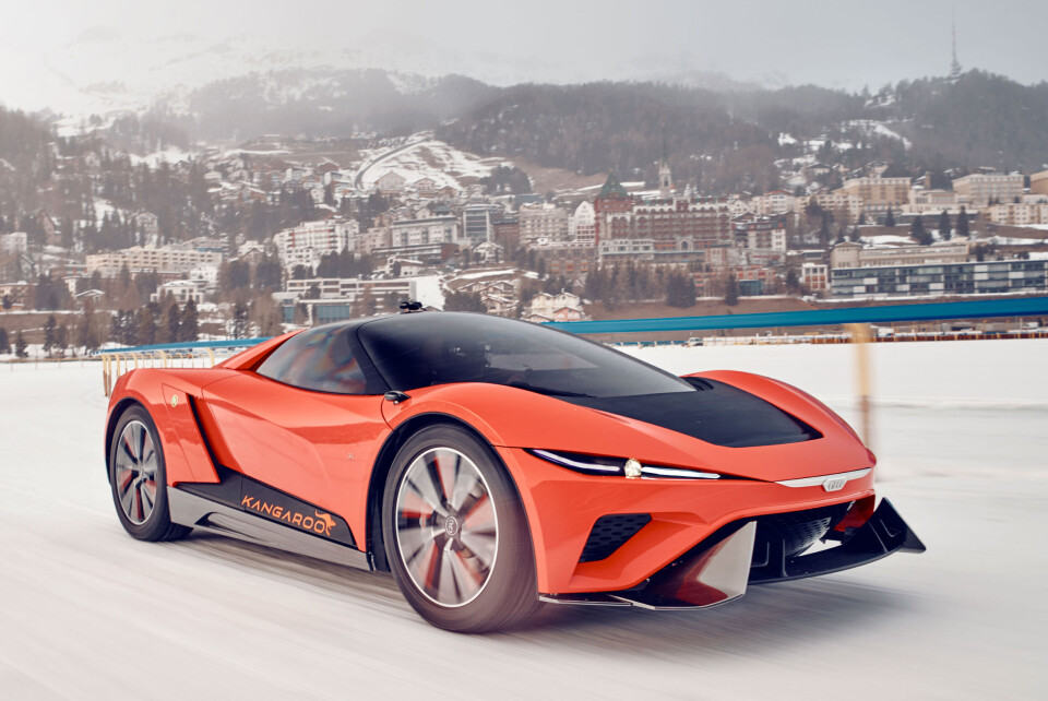 Målt mot nær 20 år eldre Nazca C2 befinner den elektriske, toseters hyper-SUV-en Kangaroo og dens ekstreme terrengegenskaper seg i den motsatte enden av bilskalaen. Med navn som hinter til Australia er Kangaroo kapabel til å ta seg like greit fram i endeløse ørkenlandskaper som i urbane miljøer. Rekkevidden på minst 450 km holder trolig til nærmeste ladestasjon skjult bak sanddynene.