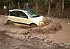 De som tvilte på Panda 4x4s terrengegenskaper behøvde ikke å vente lenge. To forskjellige terrengløyper var satt på programmet. Og terreng med overraskende stor T. Bakkene oppover og nedover var ikke bare utfordrende fordi de var smale og med opp mot 30 graders stigning, de utfordret fordi underlaget var steinete, hullete, sporete og gjørmete – samtidig.