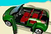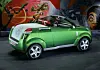 En av konseptbilen som vekker størst oppsikt blant ungdommen i Frankfurt, er uten tvil Opel Frogster. Den knallgrønne frosken byr på svært fleksible muligheter.