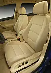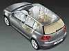 Utvendig er det, og det var ikke åpenbart fra bildene, profilen fra siden som er den mest spennende - eller bilen sett skrått bakfra. Da har den dynamiske kvaliteter som det er lenge siden vi har sett på en Golf, og den virker nesten like moderne som den nye Astra. Bakfra er det helt klart at den har arvet noe av Tuaregs organiske preg, men selv om den har fått en litt mer utpreget V-form foran er fronten skuffende lik en Lupo. Det er bare frontlyktene som redder akkurat den - de har til gjengjeld fått et ganske klart Porsche-preg - og det er ikke ille.