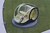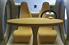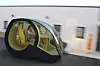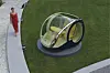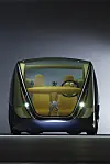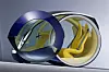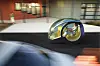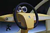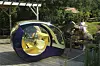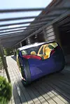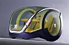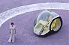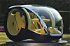 To enorme drivhjul, som samtidig fungerer som inn- og utgang for toseteren, dominerer bildet, de er der for å gi minimal rullemotstand, forteller designeren oss. Foran er det imidlertid ikke hjul, men to kuler – som visstnok skal sikre minimal svingradius. (Og maksimal rullemotstand samtidig da, antar jeg?)