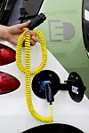 Vi får vite at motoren, som yter 30 kW, har et dreiemoment på 120 Newtonmeter. Dessuten blir vi fortalt at bilens rekkevidde er ca 115 kilometer og at den kan lades fra en vanlig stikkontakt. I Tyskland er prisen for en full opplading ca to euro.