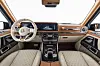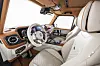Innomhus er det kvalitetsskinn som dominerer, selvsagt i de valører du foretrekker. I dette tilfellet har Brabus kombinert porselensfarget skinn med sadelbrunt, mens taket er trukket med sort Alcantara. Oransje kontrastsømmer frisker opp det hele.