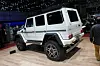 For hjulbuene skjuler det samme hjulopphenget som G63 AMG 6x6 – bare minus én aksel. Bakkeklaring på 45 centimeter er mer enn dobbelt så mye som en standard G500 – og selvsagt har 4x4² beholdt de tre låsbare differensialene (i ren flyvertinne-stil; en foran, en bak og en i midten).