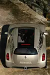 Det blir vel ikke riktig å kalle den en stasjonsvogn kanskje. En to-dørs coupé med plass til fire, eller en enorm bagasjeplass bak de to forsetene. Med en utpreget Coca Cola profil under vinduene - vi kan vel nesten snakke om et femtitallspreg? Med en front som er utpreget Renault, inklusive de massive lysorglene fra Valeo, og en hekk som er Renault-eksentrisk med de små, krystallaktige mosaikk-innslagene i karosseriet bak de bakerste siderutene.