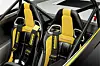 Karosseriet er fjærlett, 40 kg, og fremstilt av kompositer. Delene er boltet på så de er enkle å bytte ut når du har vært borti noe. Enorme bremser og støtdempere fra Öhlin forteller om baneambisjoner.