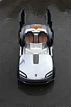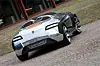 Her har han simpelthen laget noe så lite og tett som han har kunnet. Det ser ut som to aluminiumsbadekar som er lagt mot hverandre og forbundet med en plate og en frontrute og en sittebrønn. Bak finner du preget skinn, og noe som ser ut som motorbrønnen. Dørene er hengslet slik at når du åpner dem, beskriver de en stor sirkel rundt bakhjulene.