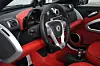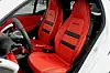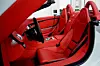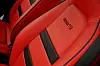 Interiøret består av rødt skinn og sort Alcantara, og vaffelmønsteret i de skinnkledde fotbrønnene krever 7800 meter med rød tråd.