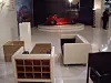 Men ikke bare det, det var et eller annet med møblene, snodige stoler, noen som kunne slås sammen og danne et slags skjermbrett, sofaer, glassborg, elegante små hyller, en funky stumtjener, som gjorde at vi også stoppet opp.