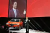 Her sto han først og holdt verdens slappeste PR-tale i fem minutter (Fluide linjer og seduisant – forførerisk er liksom ikke noe jeg trenger en av verdens største industriledere for å fortelle meg).