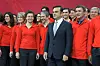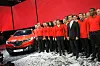 Så kom Ghosn tilbake og hentet opp hele prosjektteamet i røde gensere, hvorpå vi ble invitert til å ta bilder av Ghosn og prosjektteamet.