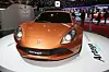 Så den nye Artega Superelettra sto på standen til Touring Superleggera. Foreløpig bare som en stylingmodell uten innmat, og i en underlig bronsebrun kulør.