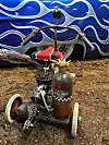 Dessuten en Tempo moped, choppet til den ugjenkjennelige, en tråsykkel med verdens lengste gaffel, og en motorisert trehjulssykkel – utstillingens mest fotograferte objekt? - før du begynner å dypdykke i revesakser («Trykk her») og lyskastere fra «NRK Fjernsynet»