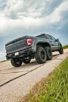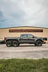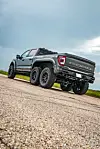 For at du aldri skal være i nærheten av å sette deg fast i terrenget har den doble bakaksler med sperre på begge. Den er hevet og utstyrt med Fox dempere, ekstra LED lysbar og massive 20-tommers felger med 37-tommers terrenghjul.