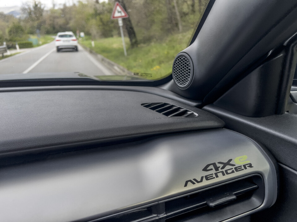 En annen utfordring er at el-Avenger kun drifter på forhjulene mens merkevaren så tydelig forbindes med firehjulsdrift og nærmest ubegrenset framkommelighet. Da hjelper det lite at Avenger har 20 cm bakkeklaring og tar seg bedre fram i utfordrende terreng enn trolig alle andre småbiler i denne klassen.