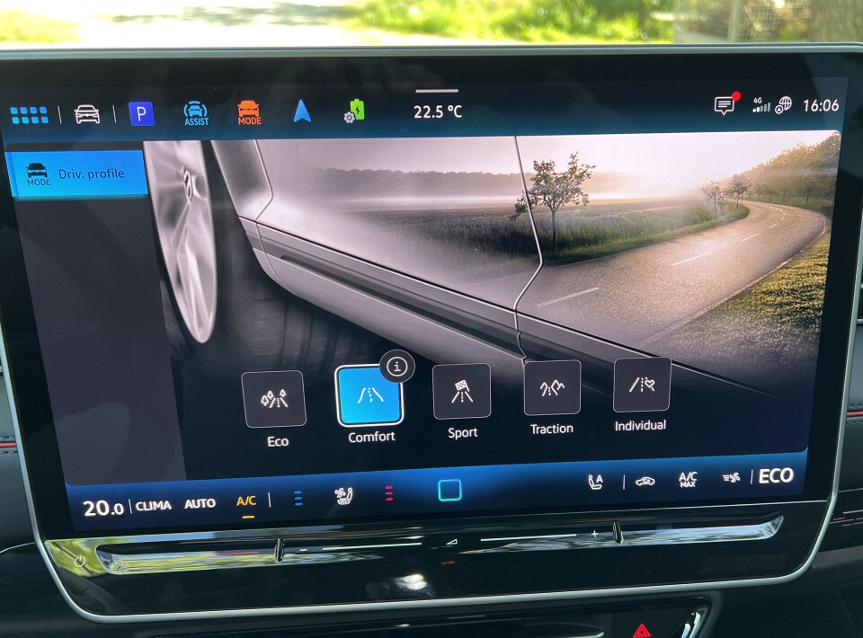 Å øke motoreffekten fra 286 hk på den bakhjulsdrevne varianten til 340 hk med 4Motion reduserer tiden det tar å sprinte til 100 km/t til 5,5 sekunder for stasjonsvognen og 5,4 sekunder for den litt lettere kombien. Den viktigste og mest merkbare forskjellen i kjøreopplevelsen ligger primært i det aktive chassiset, i forskjellen mellom komfort og sport som er standard kjøreprogrampakke i GTX-variantene. I sport kan du ha det ganske morsomt med ID.7 når veiene innbyr til det.