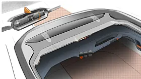 Hva som er synd er at det heller ikke i år var budsjett til å bygge interiøret, for når man ser på tegningene er det opplagt at her var det en del friske idéer. I stedet for å fylle opp med volumer i form av seter og dashbord og alt mulig, var det åpenbart at her hadde noen også jobbet med negative volumer.