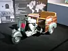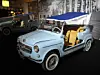 Denne vi har her er av de siste Ghia-modellene, med veldig mye grill, støtfanger og falske eikehjul. 600 kg, taket av og nesten ikke noe interiør betyr ganske mye lavere vekt. 32 hk og kanskje 110 km/t.
