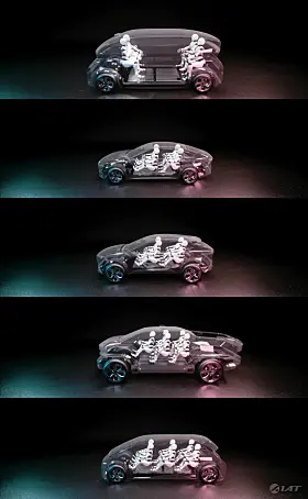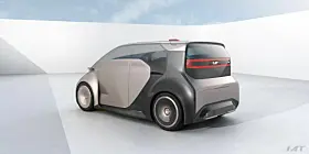 Ment som en fullstendig autonom bil, slik at innvendig er det «utrolig» plass, på tross av en lengde på under fire meter. Akselavstanden er på litt over tre meter den også – så det er nesten ikke noe overheng og hele avtrykket er benyttet til brukbar innvendig plass.