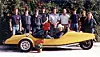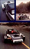 Men med dette som utgangspunkt ble det bygget noe virkelig moderne. Temmelig mye New Edge design i form av et åpent kar med frittstående forhjul med sykkelskjermer og en hekk som løfter seg slik at nesten hele bakhjulet synes. Gode dimensjoner på frontruten som helt klart burde klare å holde regnet borte selv i 160. Og igjen møter vi et tyngdepunkt så lavt at selv om det slipper bak kjører denne sirkler like fort som en Countach.