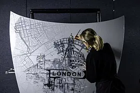Fagfolkene fra «fabrikken» ved Goodwood som har gjort jobben, har konsentrert seg om London som tema denne gangen. Først med et slags kart over London på panseret fra en Phantom.