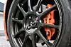 Her har de levert et sett ZE40, smidde aluminiums-felger i 17 tommer, noe som betyr at de er ekstremt lette men samtidig tåler vanvittig mye. Fargen, dark gunmetal, står perfekt til resten av bilen. Bak felgene skriker et par oransje calipere fra Brembo i front, og Nissin bak.