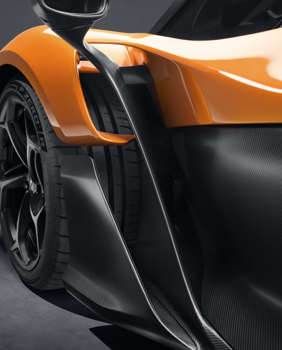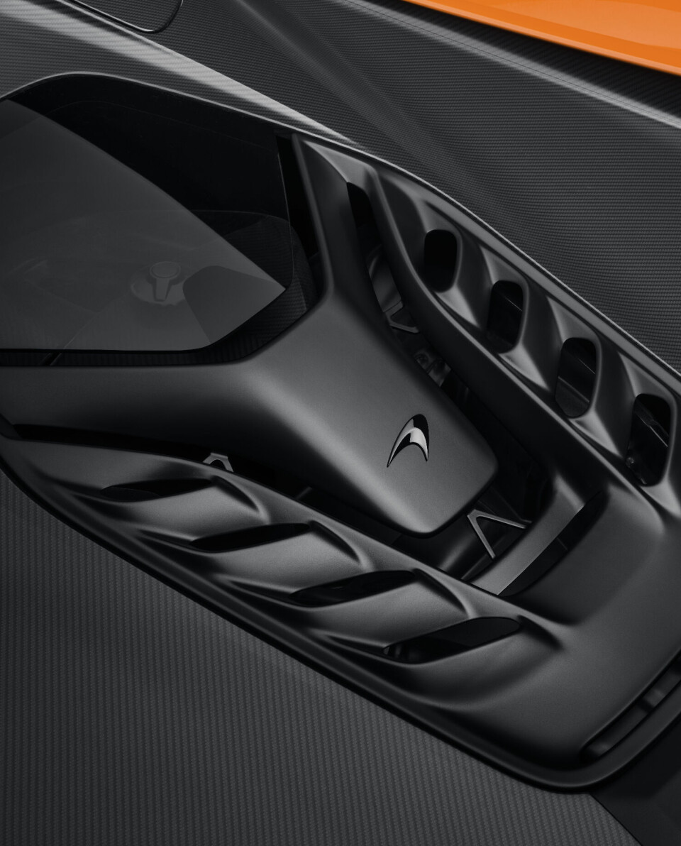 Noen bakrute er det forresten ikke, men en monitor som mates av et kamera under haifinnen på taket erstatter bakspeilet. Og fra denne avdelingen er det også verdt å ta med at bilen byr på det McLaren kaller den tynneste A-stolpen «vi noensinne har hatt».
