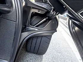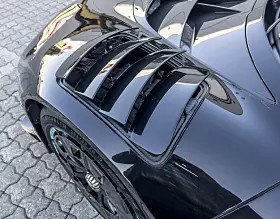 Umiddelbart legger man merke til det takmonterte luftinntaket, finnen bak, den uttrekkbare, todelte bakvingen optimaliserte felger som også bidrar til nedkraft, og ikke minst lamellene på forskjermene som lynraskt løftes for å øke kraften mot bakken og derigjennom gjør det mulig å kjøre svinger enda raskere.