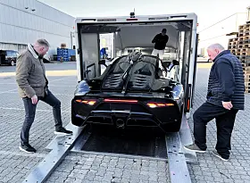 Fredlys AMG One rulles inn på BilAutofil/BilNorges stand i C-hallen i løpt av kvelden, og avdukes fredag formiddag.