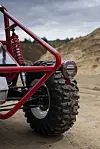 Det er mye man kan skru på selv her (egentlig kan du kjøpe hele greia som byggesett, akkurat som den opprinnelige modellen), du har blant annet justerbare dempere og Eibach fjærer. Fire-punkts seler, Cobra bøtteseter, fem-tommers skjerm med førerinfo, ryggekamera, sågar egenutviklet motor for vindusviskeren.