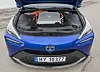 I tunnelen ligger den største av de tre hydrogentankene. Tank nummer to befinner seg under baksetet mens den tredje har plass under bagasjerommet og bak elmotoren som fra forrige Mirai er effektøkt til 182 hk/300 Nm dreiemoment. Det gir 0-100 km/t på ni sekunder. Toppfarten oppgis til 175 km/t.