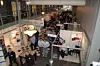Utstillere i to rom pluss gangen. Stille før stormen før alle seminardeltakerne kommer ut fra foredragene.