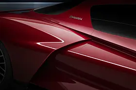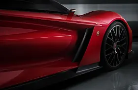 Nå har vi ikke sett detaljene ennå, men de enorme luftinntakene både foran og bak, spesielt bak, gjør at jeg håper det er snakk om noe variabel aero her. Og jeg får inntrykk av en bakrute som effektivt pakker inn motoren og som lar det hele avsluttes i en dråpefasong.