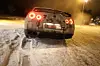 Det er mørkt, passe glatt og kveldsstille – perfekte forhold for Nissan GT-R.