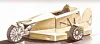 Han har imidlertid allerede bygget en gokart med samme layout, så han vet at det funker. Han påstår sannelig også at systemet har sine fordeler. Men styre-respons er vel ikke en av dem spurte jeg og tenkte på det enslige forhjulet. Der tok jeg også feil, for han har bygget bilen med tre styrende hjul. Det er bare bakhjulet som ikke beveger seg etter rattet – det skal til gjengjeld overføre skrekkelig mange krefter fra en Yamaha 1000 GTS motor, sentralt plassert foran bakhjulet.