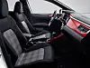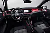 Innendørs er det sort, rødt, grått og krom som dominerer. Selvsagt har den rutete sportsseter med ekstra sidestøtte, sportsratt i skinn og aluminium-look på pedalene.