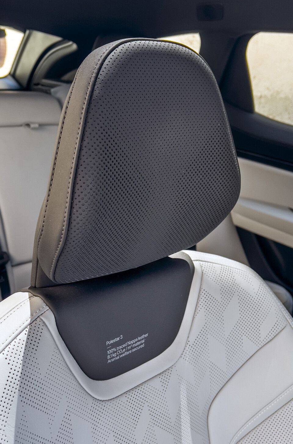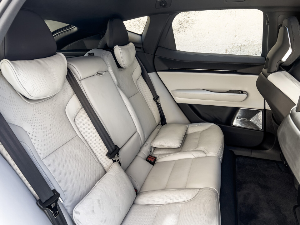 40/60-splittet bakseterygg (med skiluke) gjør det mulig å sitte ganske komfortabelt også midt i baksetet. Og selv om også Polestar 3 lider av litt for lav sittehøyde over gulvet, er benplassen så god at det bare er å strekke dem framover for å sitte bra. Pluss for myke hodeputer og løse puter til å legge i ryggen for dem som trenger det. Fikst også med høyttalere i hodestøttene og deilig med soft-close dører.