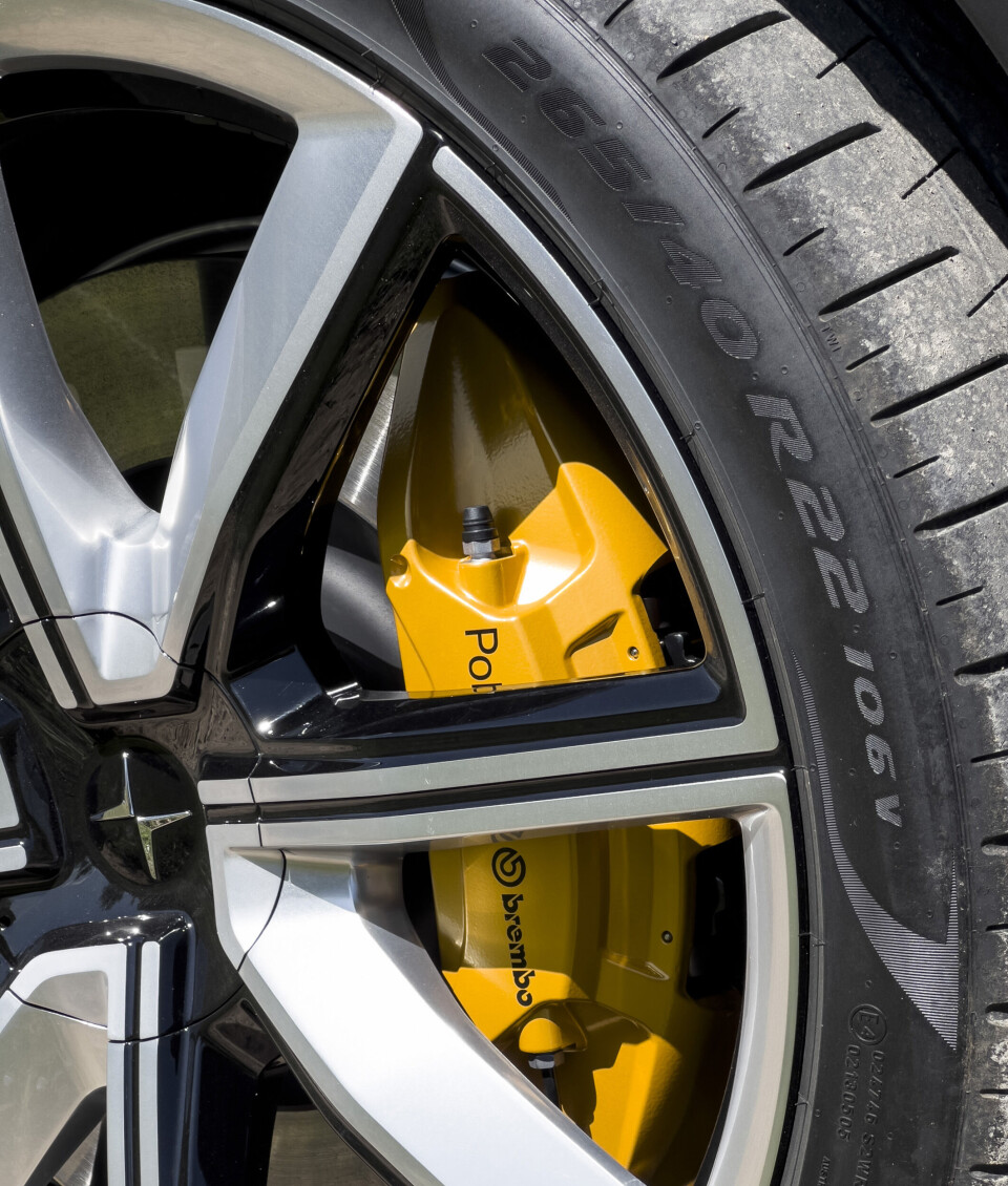 Adaptiv luftfjæring og dempere som på millisekunder tilpasser seg underlaget gjør bilen sportsligere enn den høye vekten skulle tilsi, og ikke minst takket være momentfordelingsteknologi utviklet av BorgWarner for Polestar og Volvo, kan Polestar 3 virkelig presses til glede for alle som setter pris på kjøreglade biler. Svært aktiv motorbrems gjør det mulig å ferdes engasjert med kun bruk av én pedal. Farten tøyles med Brembos bremseteknologi godt synliggjort med gulfargede calipere.
