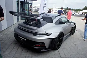 Og sikkert litt hjelp. Flere trucker fra utlandet, MAN alle sammen – man må jo holde seg til familien – hadde tatt med seg halve Porschemuseet. Både i form av minner om betydelige Porschepersoner og -begivenheter, i form av for eksempel den gamle TAG-finansierte Formel 1 motoren som McLaren vant en del med (25 seire og både Prost og Lauda ble verdensmestre med denne maskinen) og i form av biler.