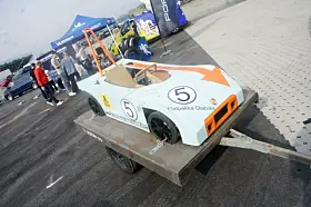 Over den nydelig 917-replicaen i Gulf livré sto det i hvert fall «Porsche 917».
